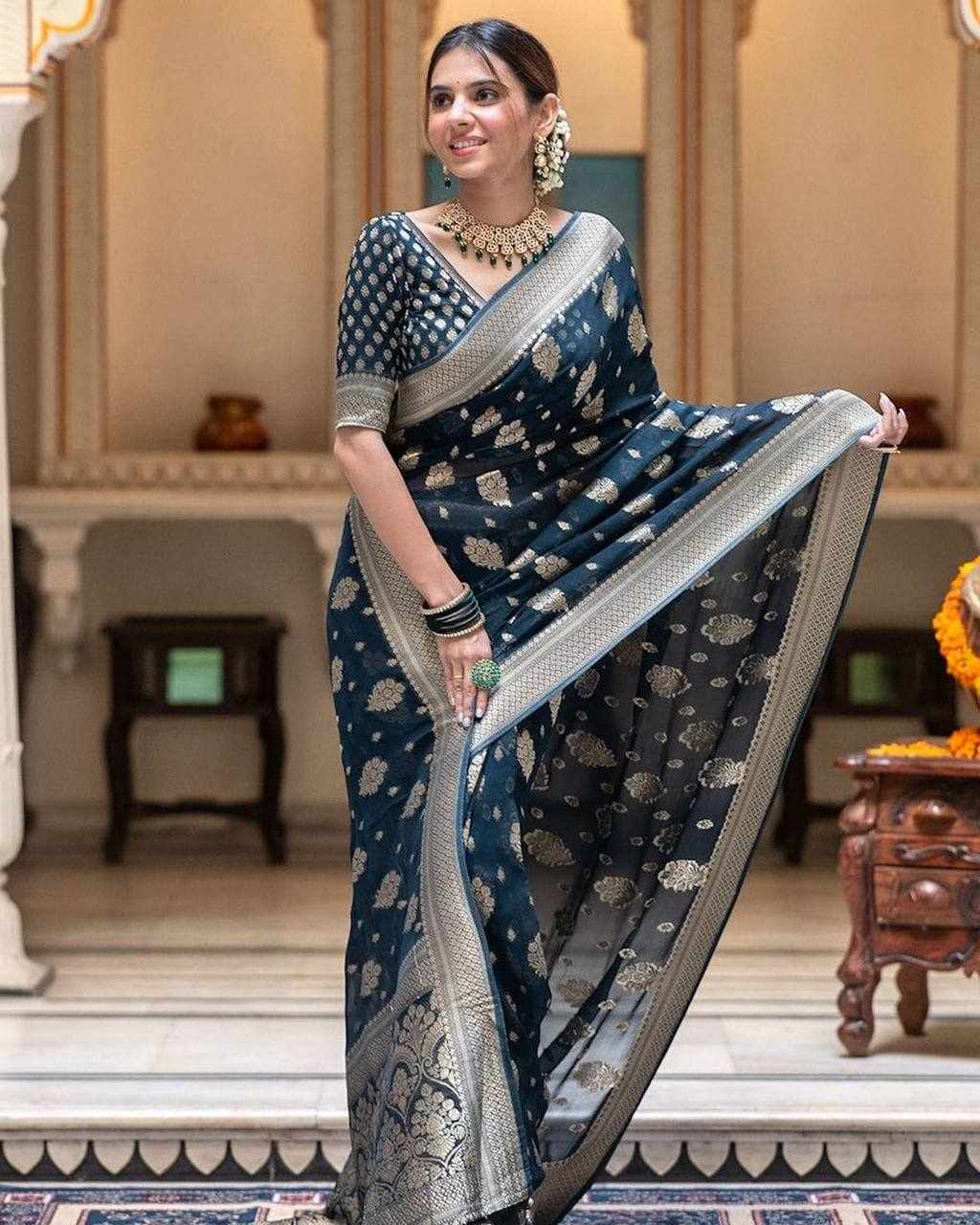 KP-R 190 New Traditional Wear Navy Blue Saree