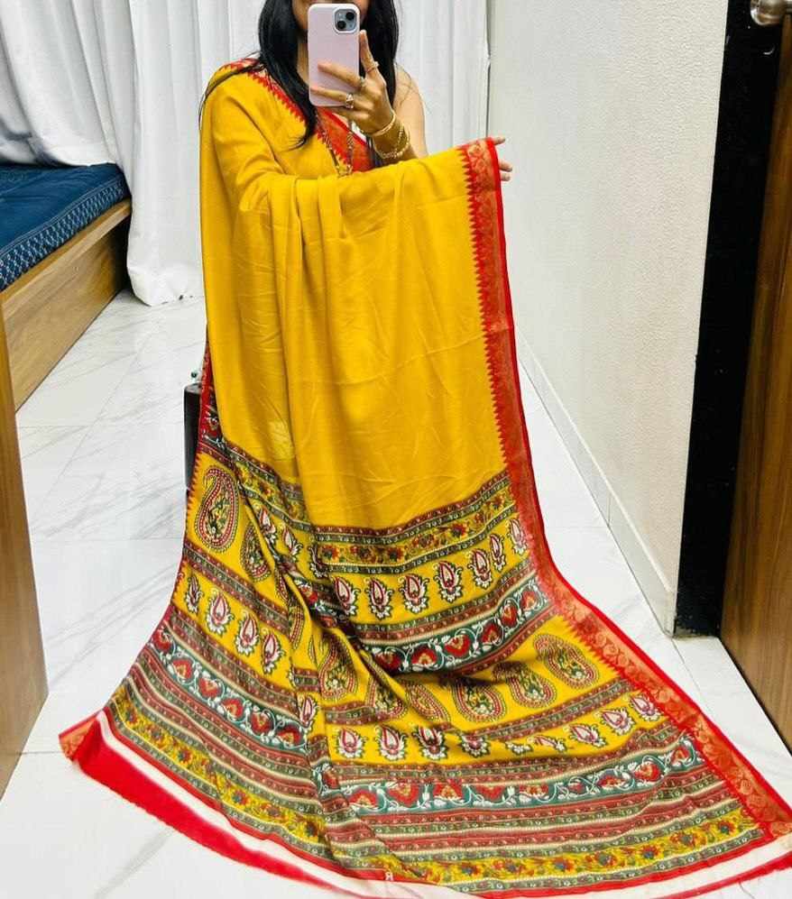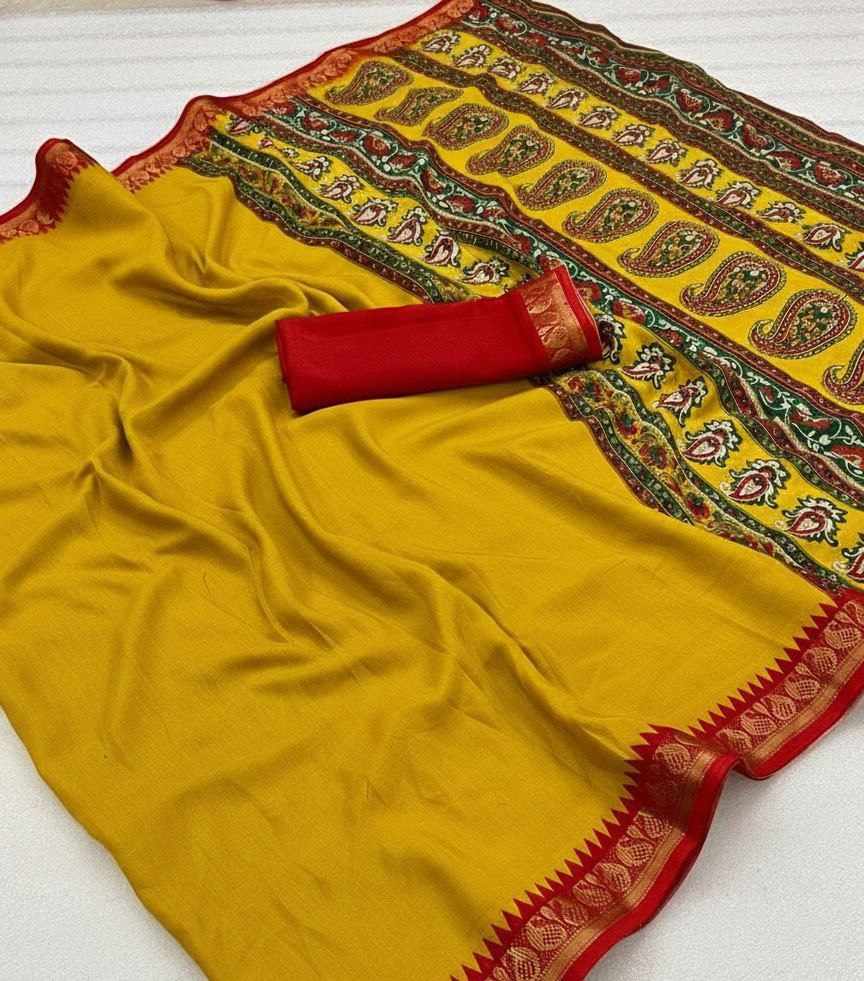 | Name : | PIYU P1019 New Designer Wear Yellow-Red Saree |