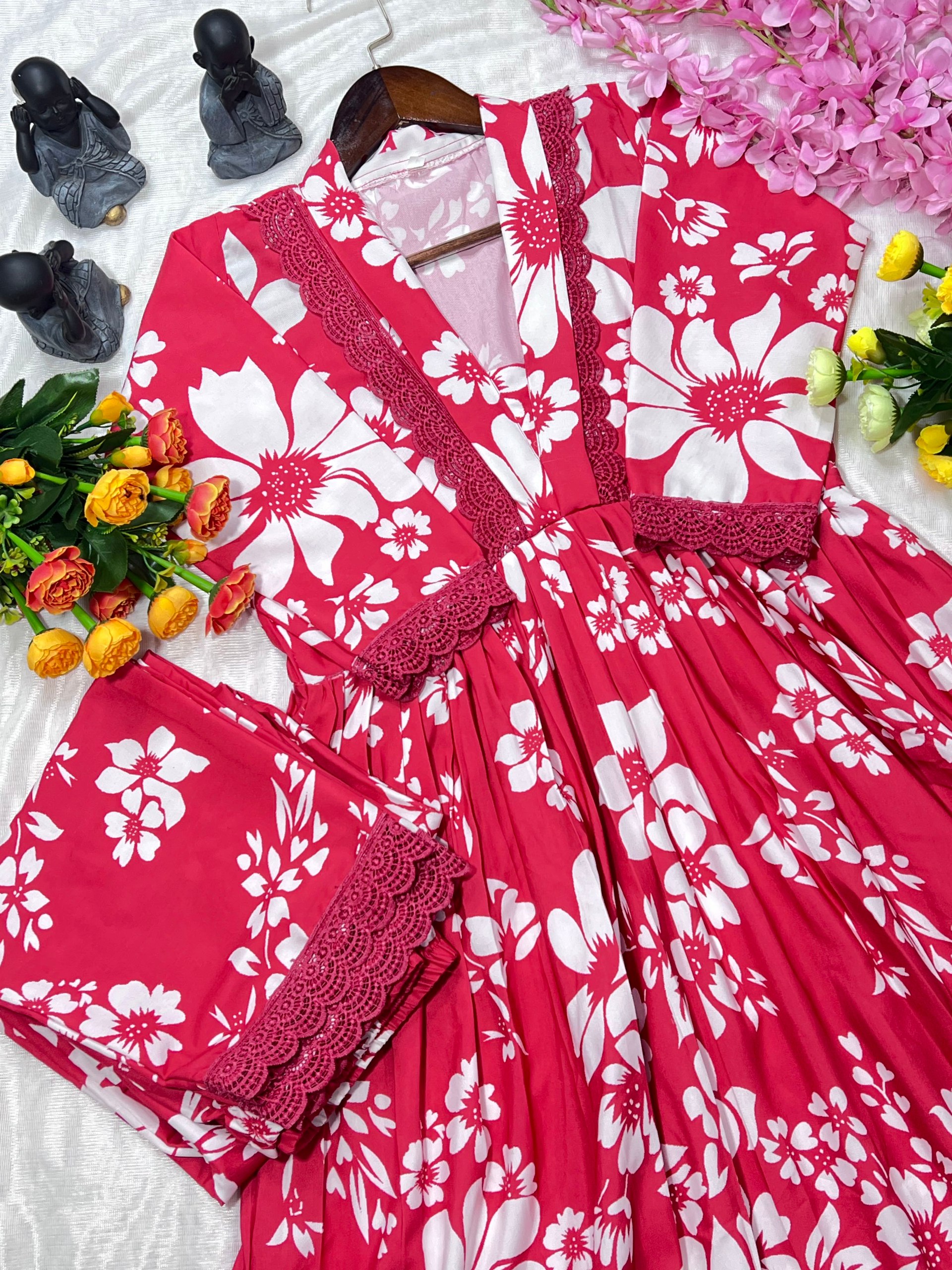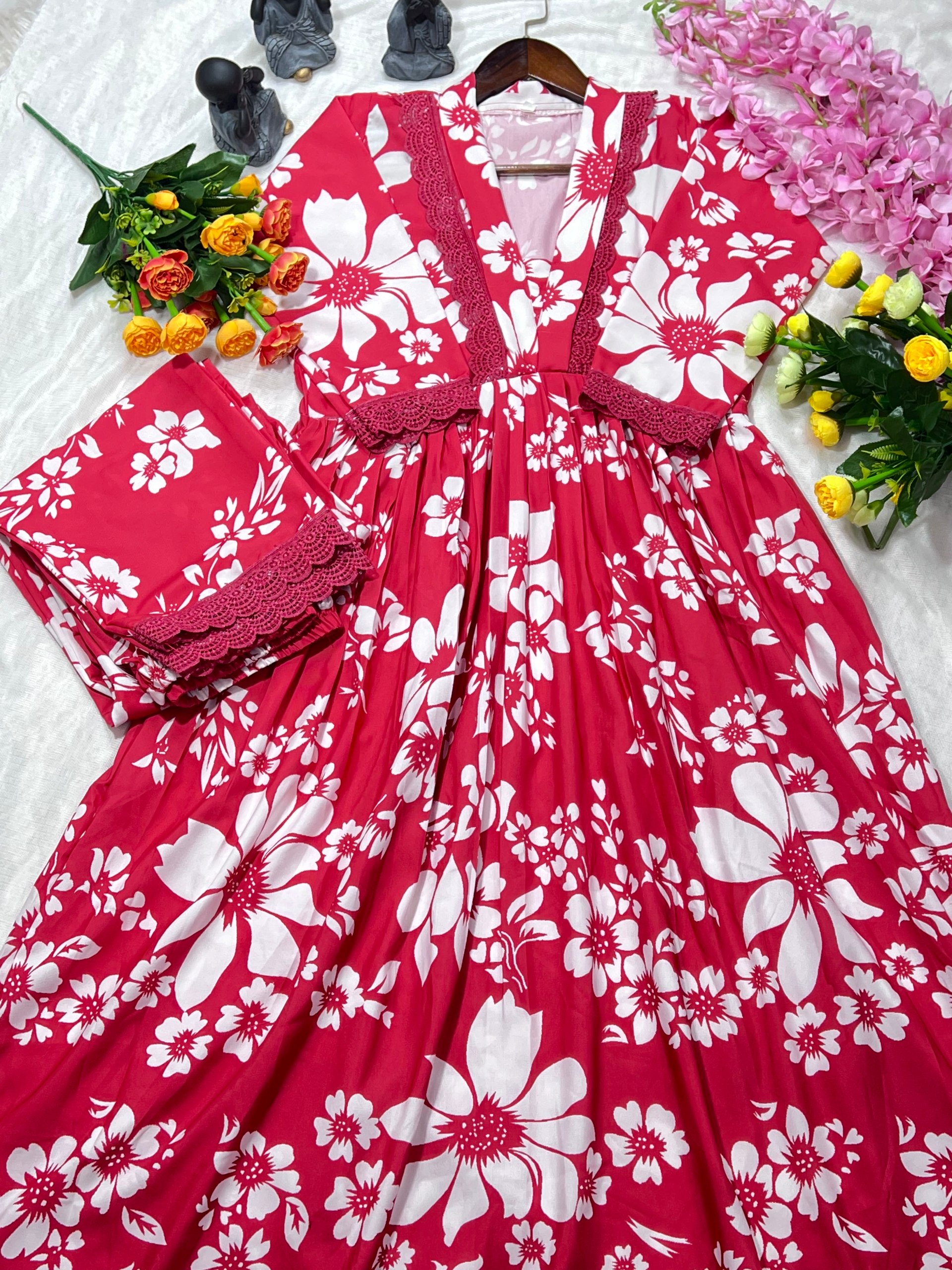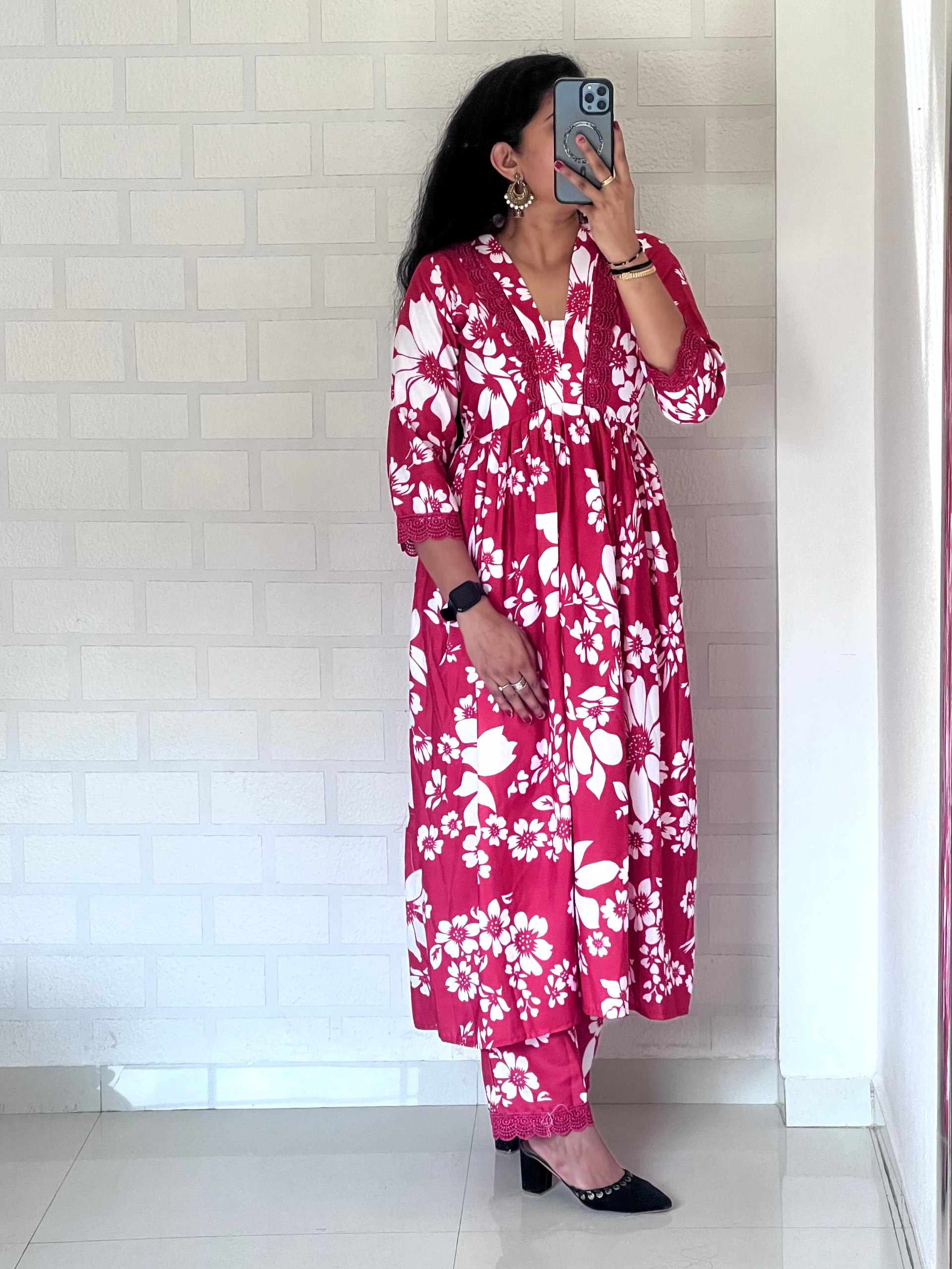 JKWH 999 Pure Fine Cotton Febric Embroidery Work A-line Kurti Set With Pocket